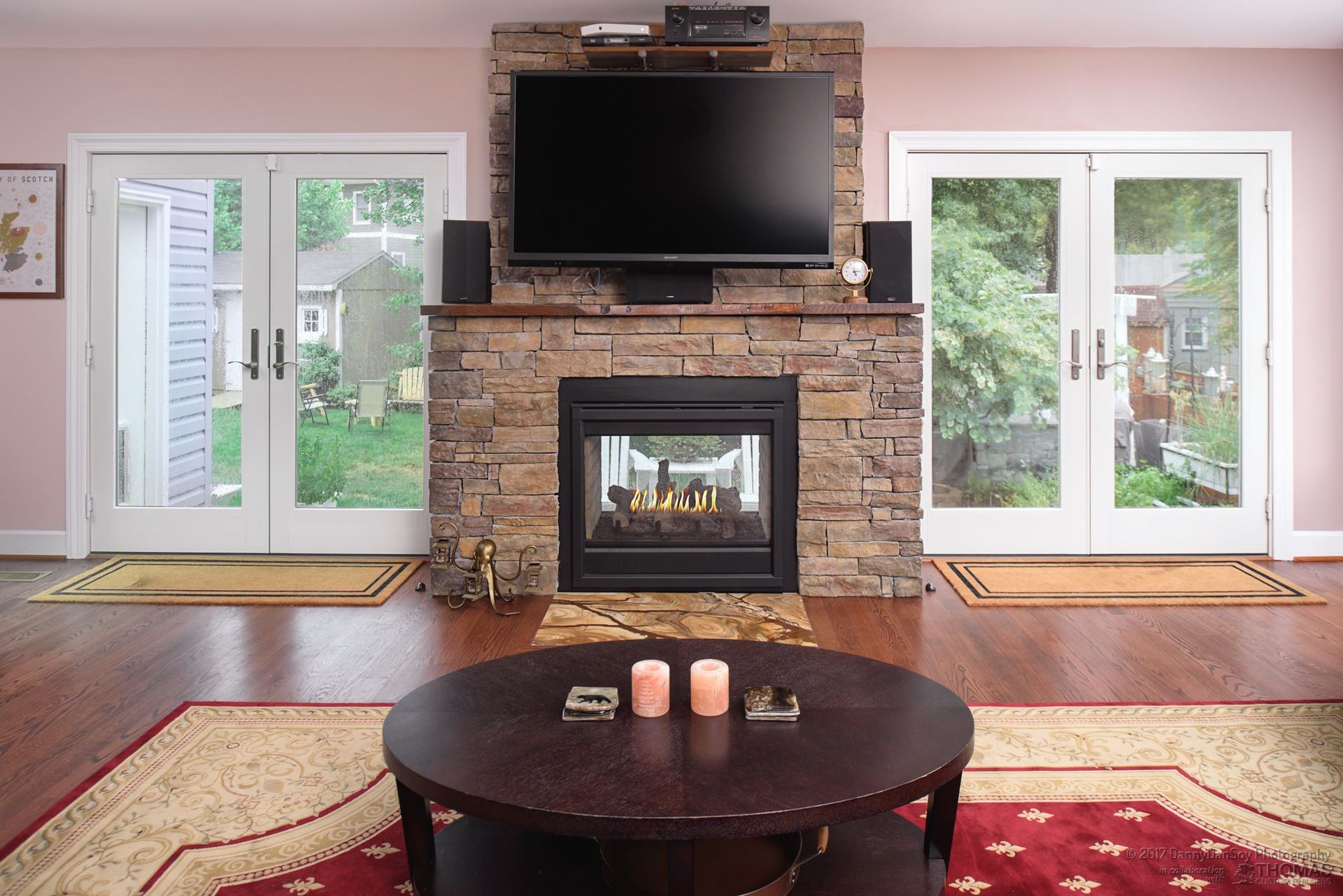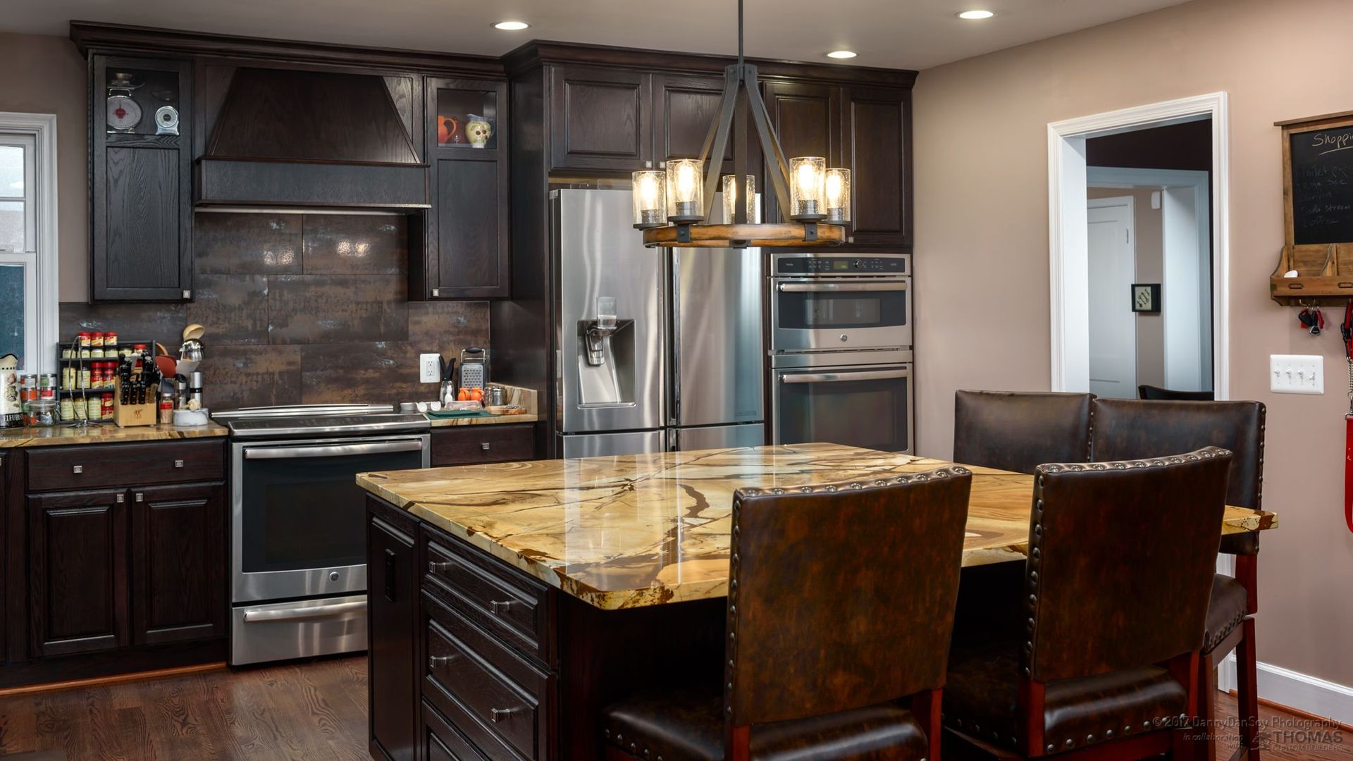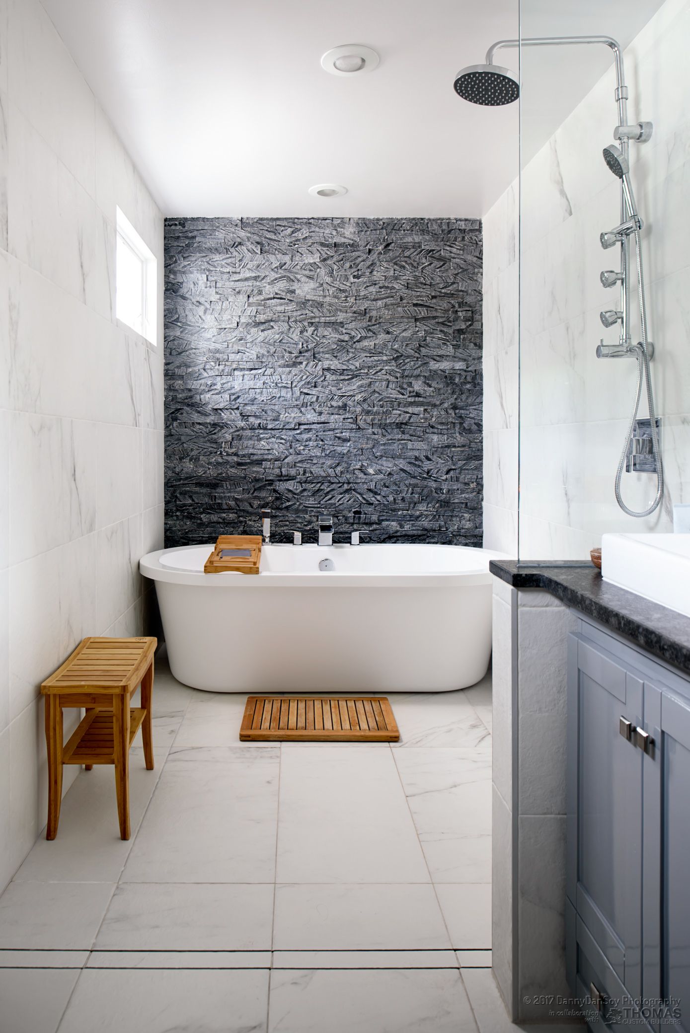 We completed a full second story addition and rear great room on this home in Falls Church, VA with a new master suite and two additional bedrooms and a master bath with wet room and an additional bath plus a playroom and laundry room. The addition was designed with a pitched roof allowing for a vaulted ceiling in the master bedroom and the new great room. The master bedroom opens to a second floor covered porch, complete with glass railing and lighted ceiling fan. The spa-like master bath features an oversized, free-standing tub with floor to ceiling slate stacked-stone backsplash. The curbless shower and wet room helps this modern bathroom feel light and airy. We also remodeled the gourmet first floor kitchen, which is anchored by this stunning granite island with seating for four. Custom Schrock cabinets and a dramatic tile backsplash make this oversized kitchen feel warm and cozy. In the great room, we added a two-sided fireplace for indoor/outdoor use. The incredible back patio is sure to be a gathering spot for this family for many years to come! At Thomas Custom Builders, we love the challenge of designing a second story addition. There’s an art to it, and it feels tremendously rewarding when you crack the code and, like in this home, the plan just “works.”
