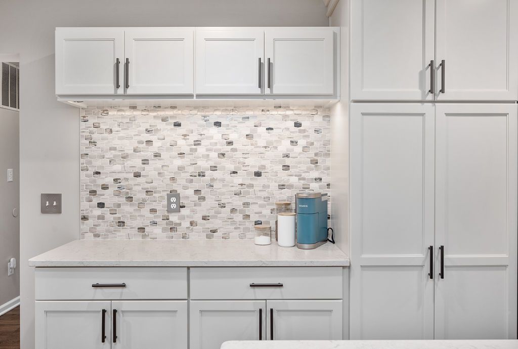 Our homeowners in Lorton wanted to update their first floor, which included the kitchen, powder room and family room. We also built a sunroom addition right off the kitchen. We incorporated an under-utilized dining room to expand the kitchen and created a better flow between the kitchen and family room. The mudroom and entryway were also spruced up. The finished product is not only functional but very warm and inviting.