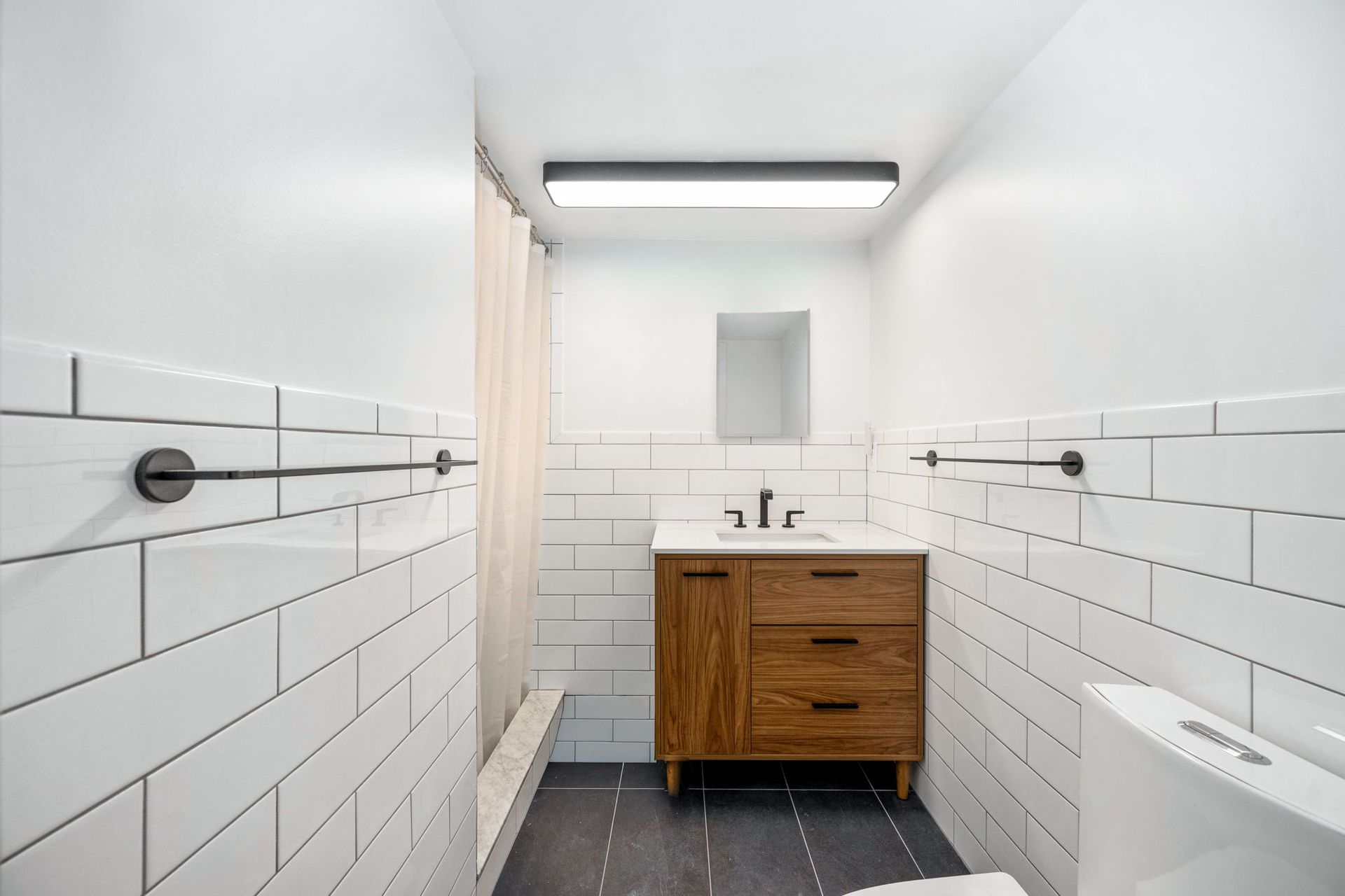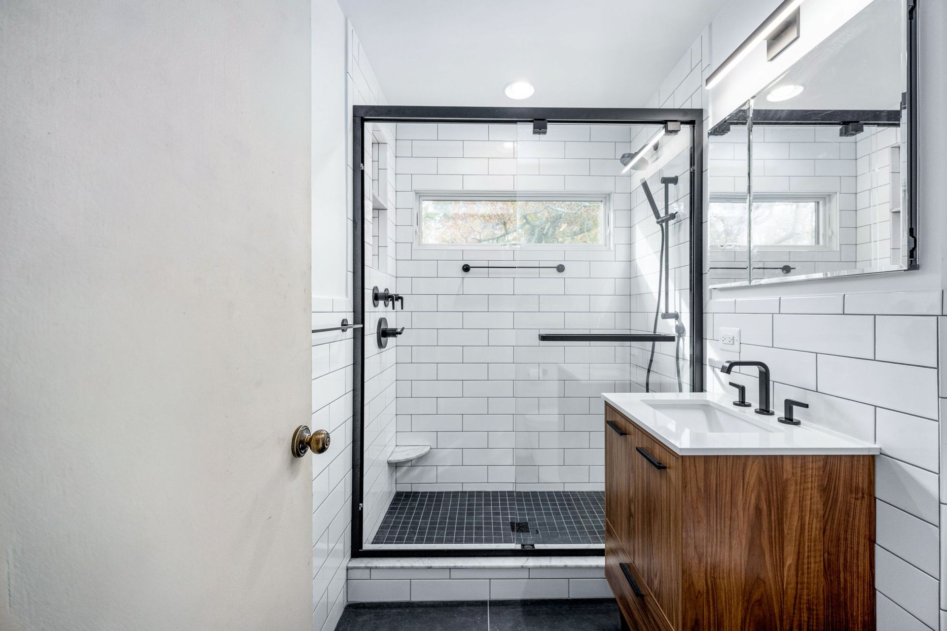 Our homeowners in Lorton tasked us with improving their existing home for future ease of use and maintenance, including exterior updates. Exterior work included building a new hip roof. Installing new Architectural shingles and new vinyl siding. Install new Anderson windows and Therma-Tru doors. On the interior, we remodeled two bathrooms with an emphasis on "invisible accessibility, including strategically placed grab bars. New wood vanities, custom tile, LED lighting fixtures and efficient plumbing fixtures complete the look. The final result ensures comfort today and total independence for the long haul.