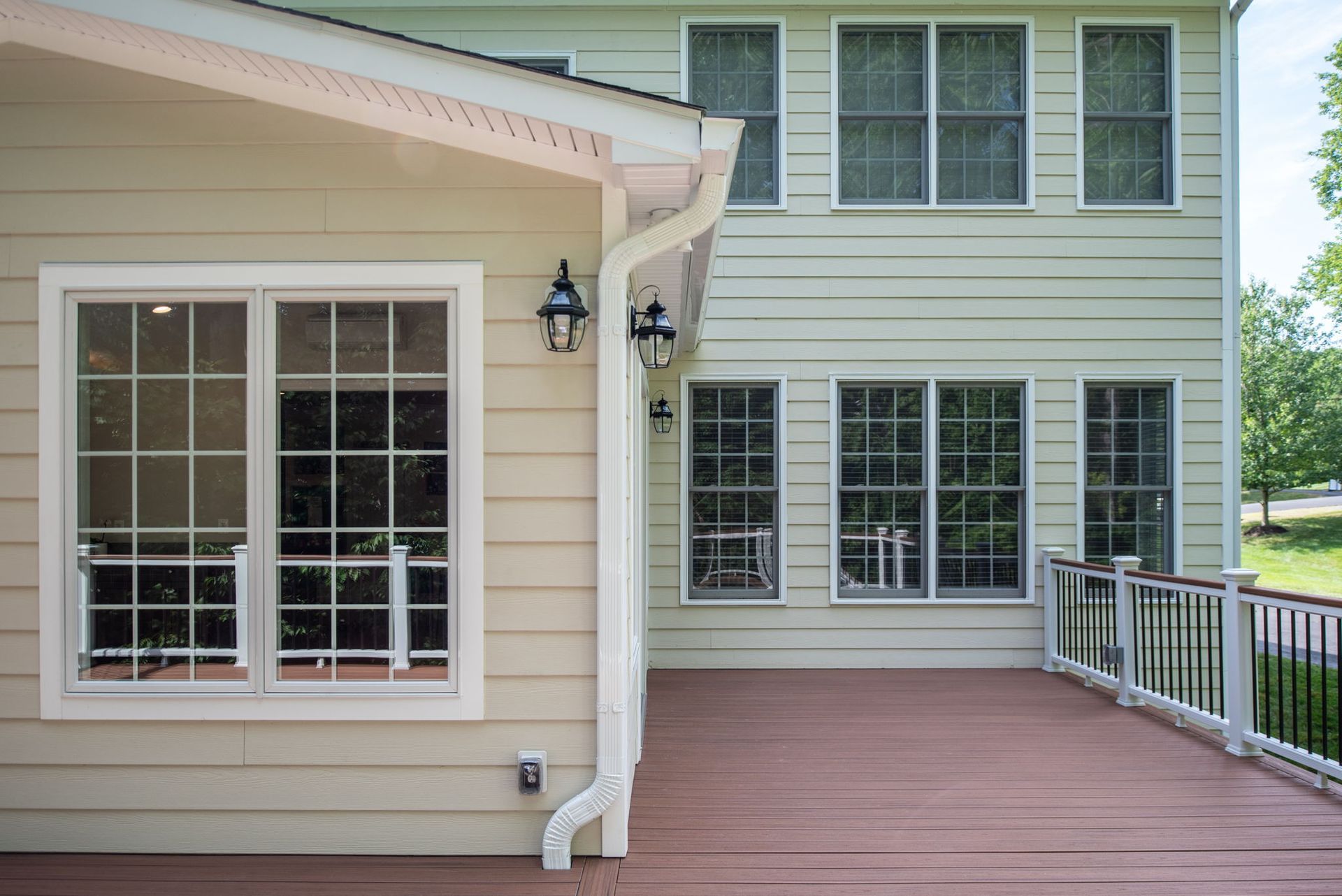Next, we added a beautiful sunroom and Trex deck off the kitchen. Three walls of windows help bring the outside in.